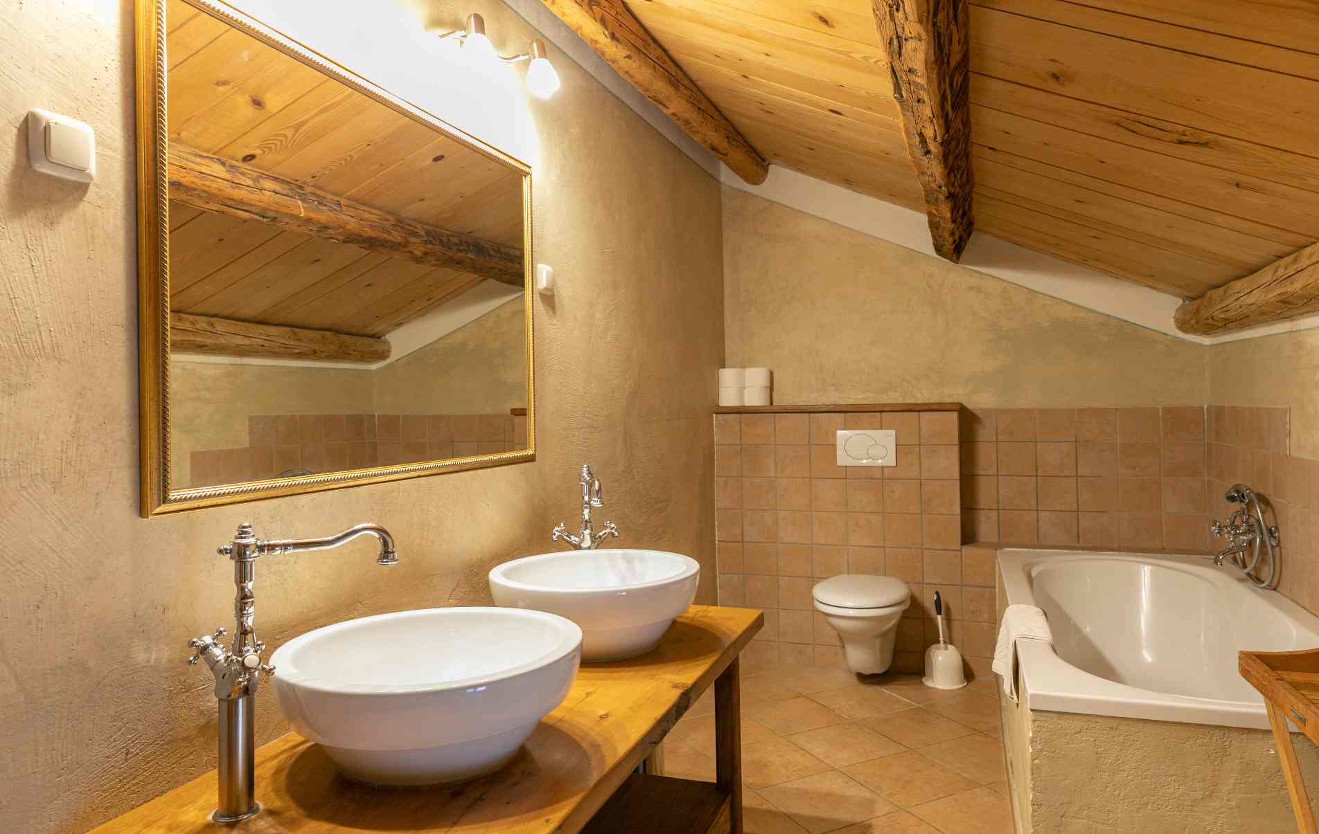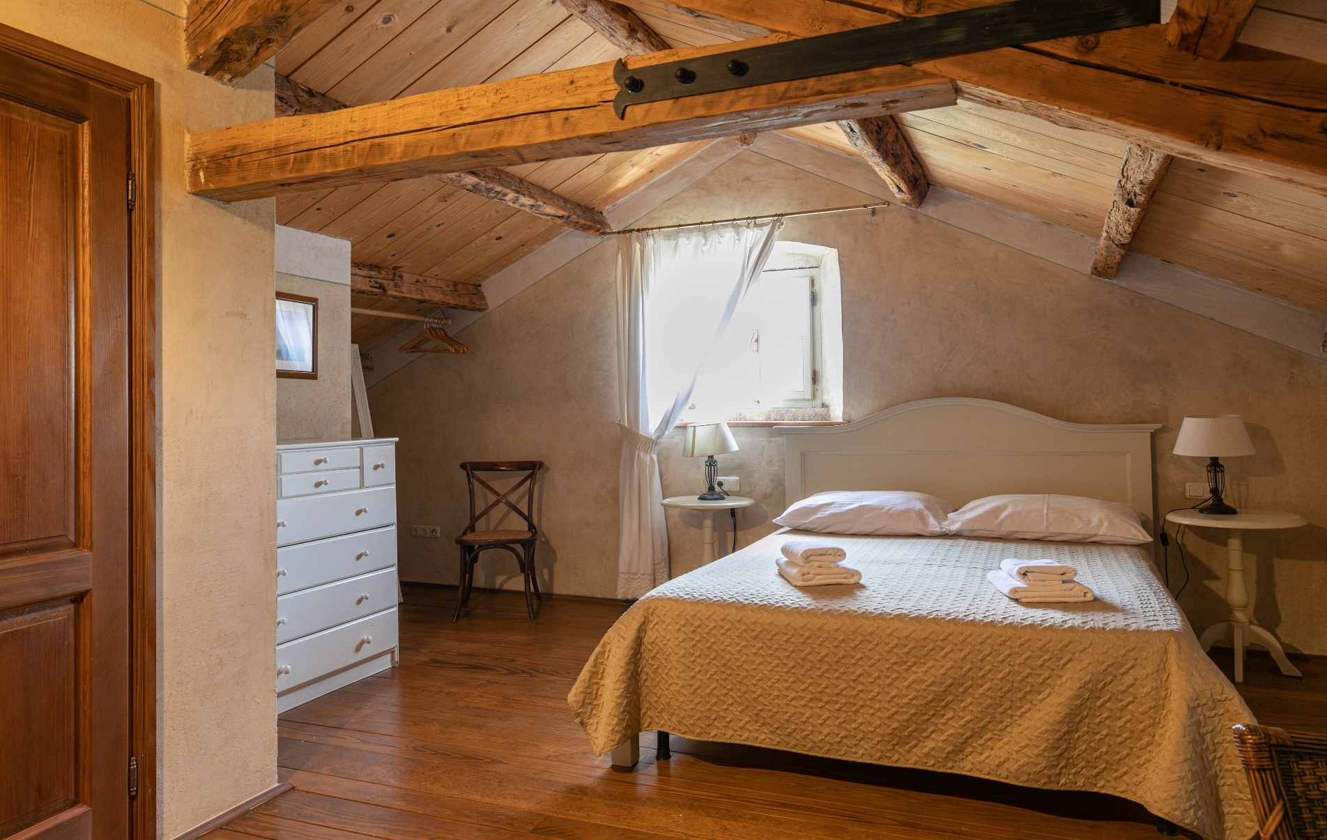 Na katu su dvije dvokrevetne spavaće sobe, svaka s vlastitom kupaonicom, što osigurava komfor i privatnost za sve goste. U potkrovlju se nalazi master soba – dvokrevetna spavaća soba s dodatnim dvosjedom na razvlačenje (dodatni ležaj za dvije osobe) i vlastitom kupaonicom, idealna za obitelj s djecom ili par koji želi više prostora.